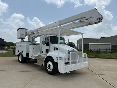 '14 KW T-370, Cummins 300, Allison auto, 88K miles, only 5,600 hours. '07 Terex HRX-60, insulated, material handler, 2 man bucket, cab/brush guards, aux. tool hyd., air/electric to rear, pintle hitch, 37K GVWR this truck DOES require CDL.